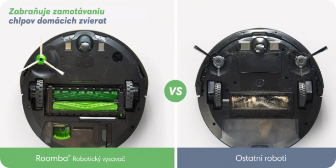 Dve špeciálne navrhnuté hlavné kefy sú gumené a odolné voči namotávaniu vlasov. Minimalizujú tak čas strávený údržbou robota a ušetria zdĺhavé odmotávanie vlasov a chlpov, ako je tomu pri štetinových kefách.